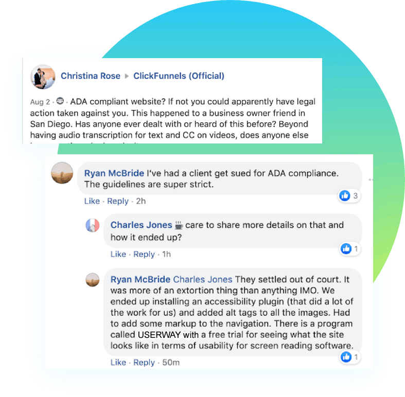 Don't get suckered. UserWay® is the industry leader which is why we partnered with them. We make about $1 for a referral whereas we would make in the range of $15+ every month with one of those less reputable firms. We picked this route because it's a matter of doing what's right for our clients, not a short term profit.